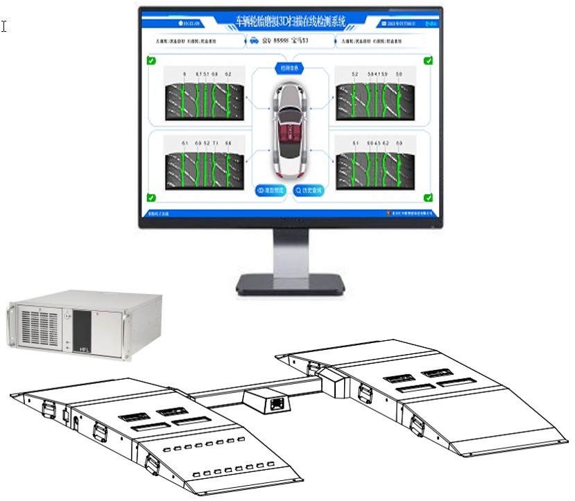本系統(tǒng)是由北京匯豐隆智能科技有限公司開發(fā)并擁有自主知識產(chǎn)權的一款全自動化乘用車輪胎磨損3D掃描在線檢測系統(tǒng)。車主/司機僅需駕駛車輛從檢測系統(tǒng)駛過,檢測系統(tǒng)即可快速、準確的檢測出車輛輪胎的磨損狀態(tài)并可在顯示屏或及智能電視上顯示出本次檢測結果。檢測報告具有精度高、速度快、顯示界面信息齊全等特色。同時,檢測報告記錄了被檢測車輛的車牌及車型信息,便于日后方便準確查詢及對比。